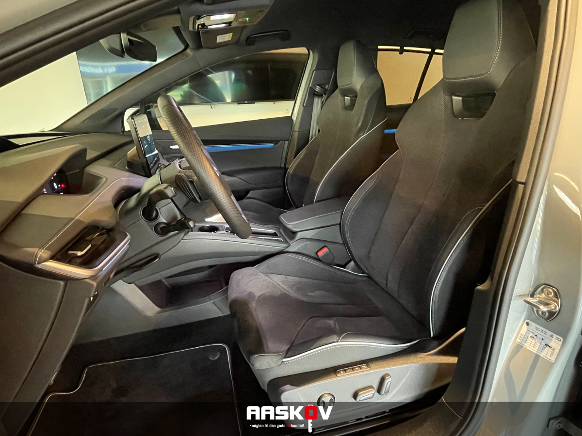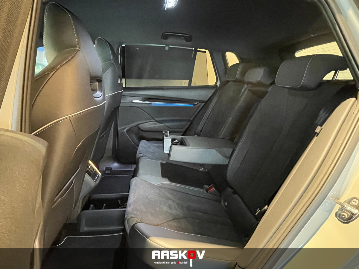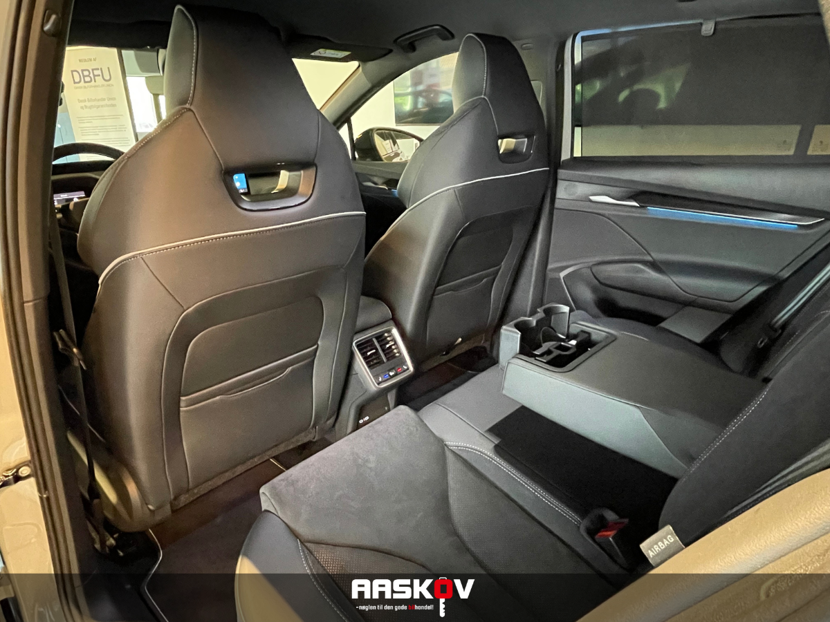 , kørecomputer, digitalt cockpit, bagagerumsdækken, læderrat, multifunktionsrat, alcantaraindtræk, sportssæder, el indst. førersæde, højdejust. forsæder, massage i førersæde, splitbagsæde, mørk loftbeklædning, 20" alufælge, el-klapbare sidespejle m/varme, led kørelys, fuld led forlygter, matrix led forlygter, adaptive forlygter, kurvelys, mørktonede ruder i bag, svingbart træk (elektrisk), fuldaut. klima, varme i rat, 3 zone klima, varmepumpe, nøglefri adgang, adaptiv fartpilot, fjernb. centrallås, elektrisk kabinevarmer, aut. nedbl. bakspejl, sædevarme, udv. temp. måler, varme i bagsæde, 4x el-ruder, el betjent bagklap, fod betjent bagklap, elektrisk parkeringsbremse, headup display, trådløs mobilopladning, type-2 ladekabel, dab+ radio, navigation, håndfrit til mobil, apple carplay, usb-a tilslutning, android auto, musikstreaming via bluetooth, regnsensor, 360° kamera, bakkamera, parkeringssensor (for), parkeringssensor (bag), dæktryksmåler, skiltegenkendelse, isofix, fjernlysassistent, esp, førerovervågning med advarsel, træthedsregistrering, vognbaneassistent, automatisk nødassistent, automatisk nødbremsesystem, blindvinkelsassistent, auto hold, automatisk lys, 9 airbags, Ambiente belysning,
