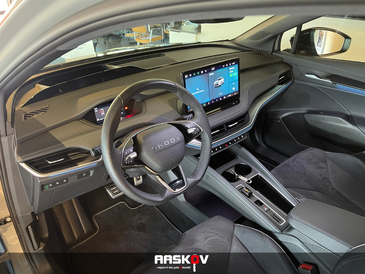 Rigtig fin og mega velkørende Skoda Elroq i den smarte Sportline udgave er netop landet på vores lager. Der ydes 4 års fabriks garanti samt 8 års batteri garanti på denne bil.